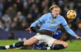 22岁的丹麦前锋拉斯穆斯·霍伊伦德在帮助...