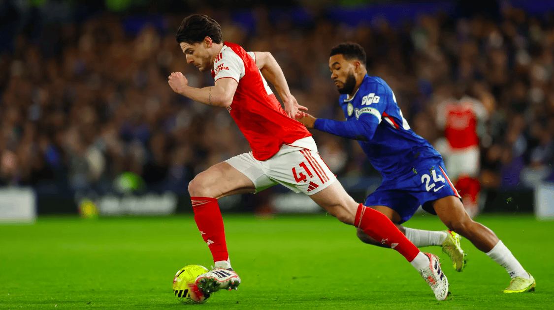 开场只有5分钟,伦敦德比的火药味就上来了,赖斯放倒凯塞多,后者气不打一处来,连续两下,推倒了梅里诺。